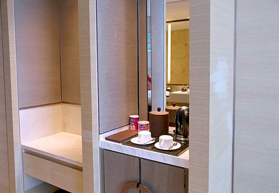 Accommodations include options such as Deluxe King with City View, Standard Queen, Executive Deluxe Suite, and more, all featuring amenities like extra-long beds, a bathtub, free toiletries, and a view. Family-friendly touches include a kid-friendly buffet and kids’ meals. Parking onsite may incur extra charges, and payment is accepted in cash or major cards including American Express, Mastercard, Visa, JCB, Diners Club, and UnionPay.